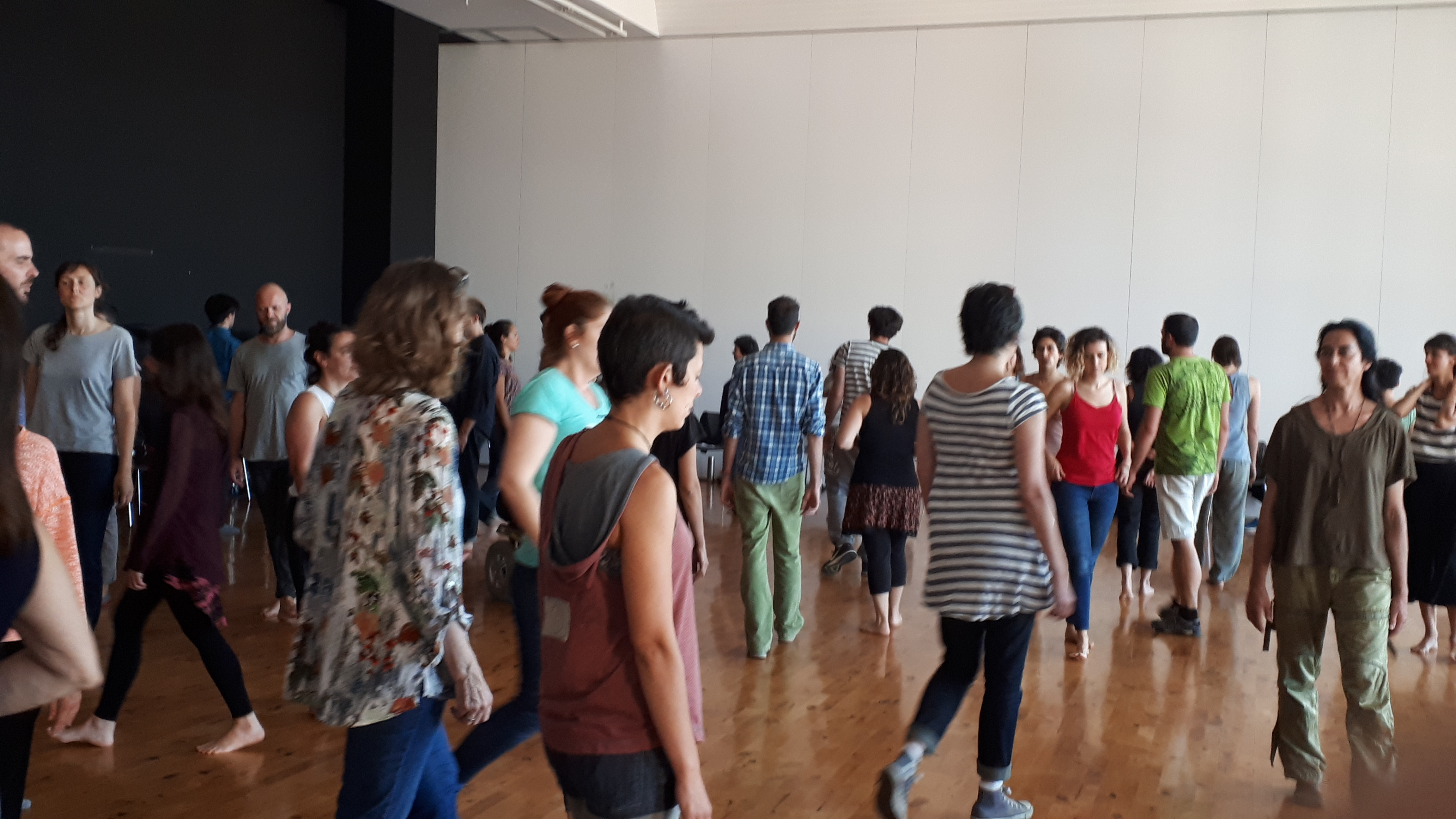 Este fin de semana pasado hemos estado en la Fabrica de Creació de Fabra i Coats de Barcelona, un recinto histórico, que ha acogido a los casi 50 participantes de todo el mundo en este seminario «Bailando en mundos paralelos» (abierto al público), organizado por la Escuela de Trabajo de Procesos: y conducido por Kate Jobe y Gill Emslie.